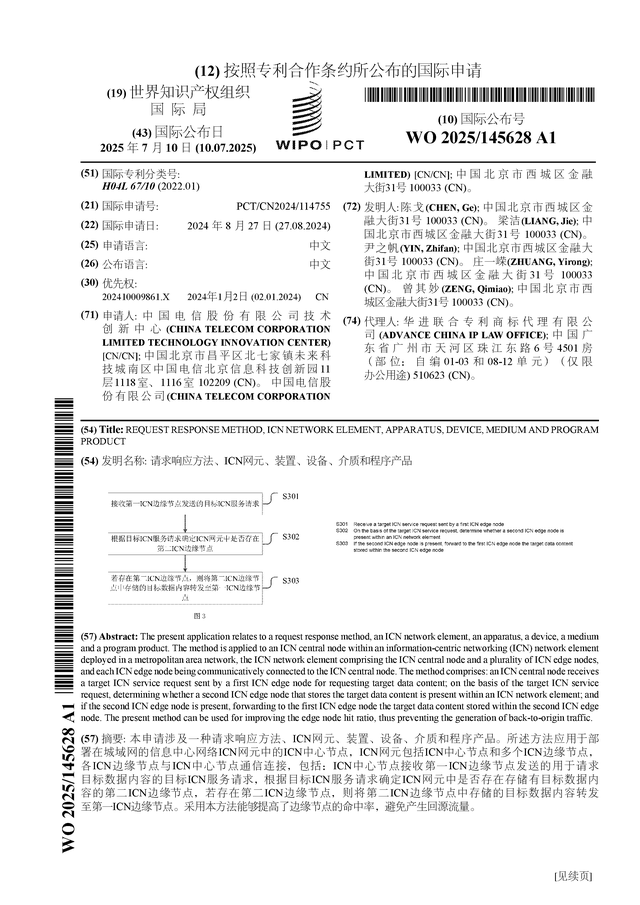 本站消息,根据企查查数据显示中国电信(601728)公布了一项国际专利申请,专利名为“请求响应方法、ICN网元、装置、设备、介质和程序产品”,专利申请号为PCT/CN2024/114755,国际公布日为2025年7月10日。